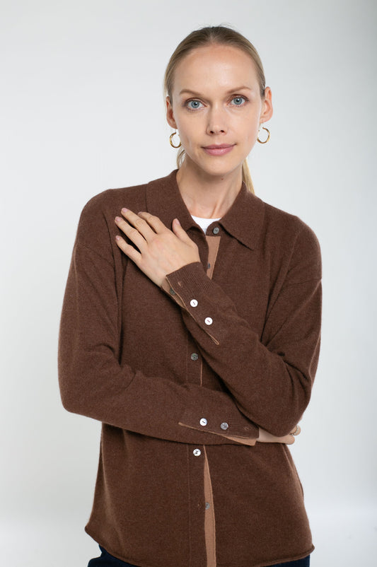 Cashmere Long Sleeve Knit Shirt with Contrast