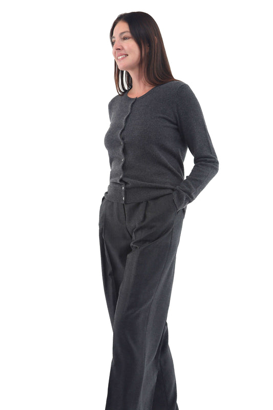 Cashmere Blend Long Sleeve Cardigan with Embellishment