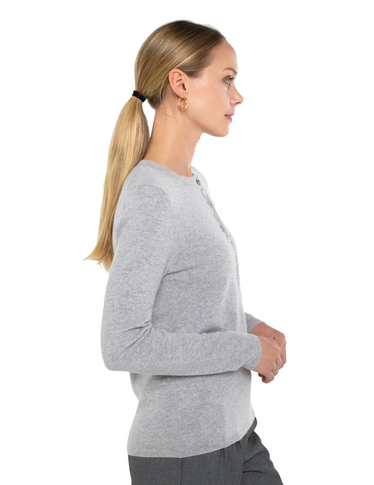 Baby Cashmere Long Sleeve Henley Button Crew Neck