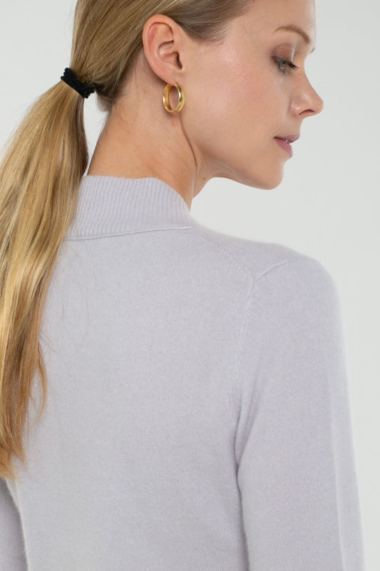 Cotton Blend Long Sleeve Double Sided Mock Neck Pullover