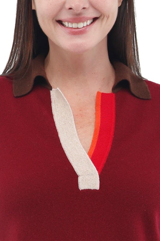 100% Cashmere Color Blocked Long Sleeve Polo Collar