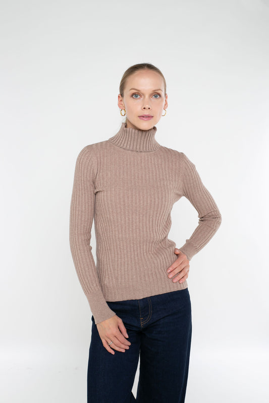 Cotton/Cashmere Blend Long Sleeve Rib Turtle Neck Pullover