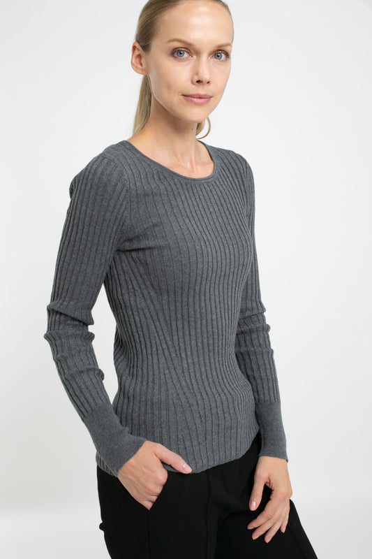 Cotton/Cashmere Blend Long Sleeve Rib Crew Neck Pullover