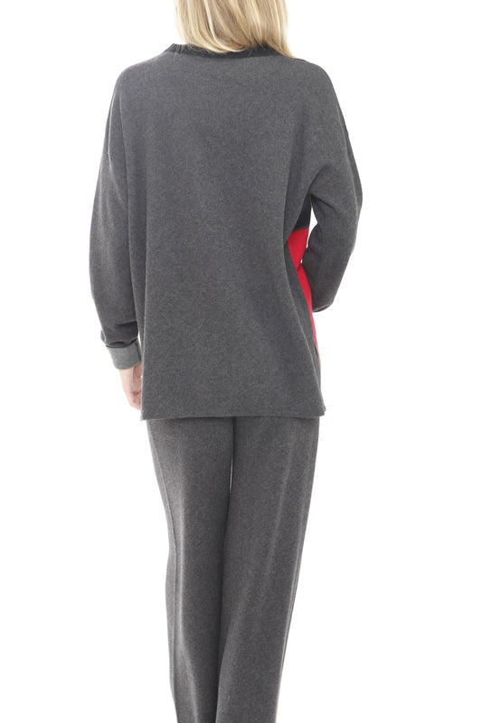 Cashmere Blend Long Sleeve Sweater with Exposed Seam