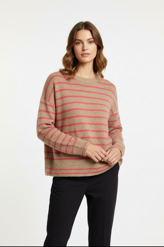 Cashmere Long Sleeve 2-Tone Stripe Pullover