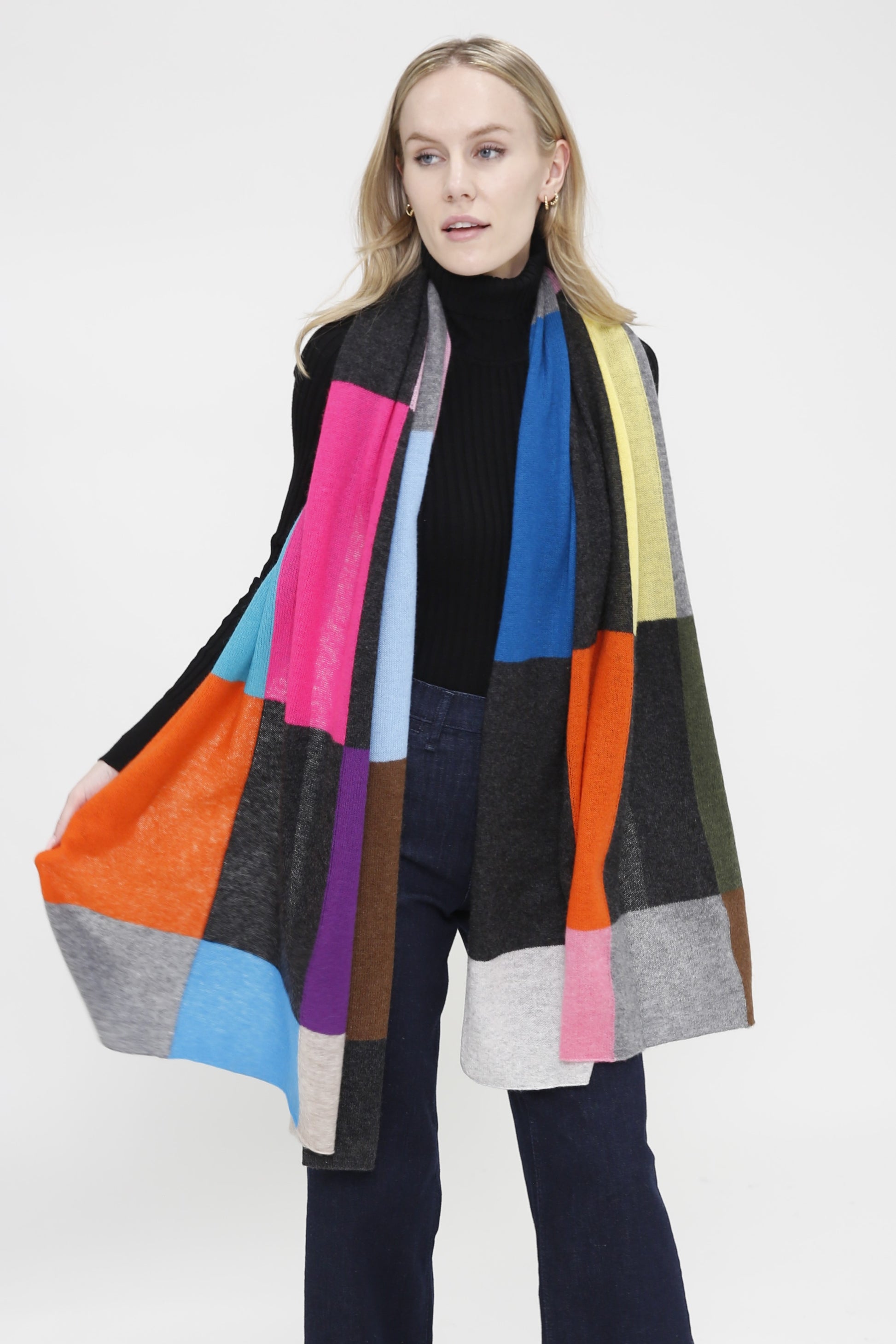 This patchwork cashmere shawl combines the luxurious softness with a stylish modern throw wrap.