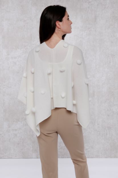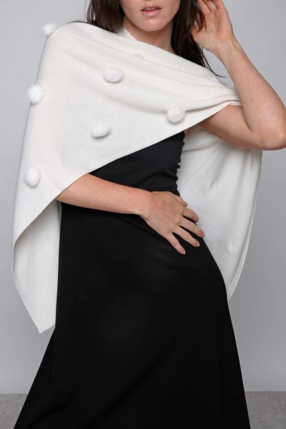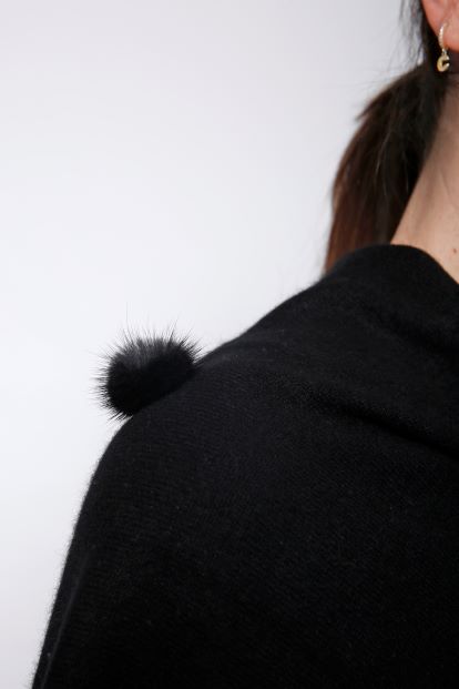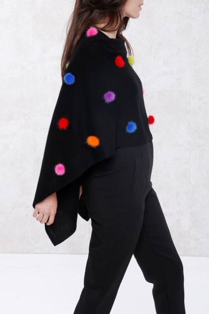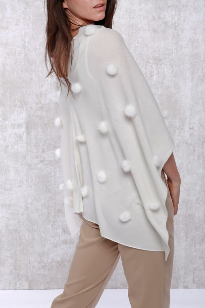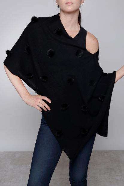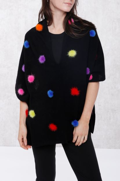 Our signature topper with all over mink pom poms. Whether worn with jeans or a dress, this cashmere topper with mink adds an instant touch of luxury to any ensemble.