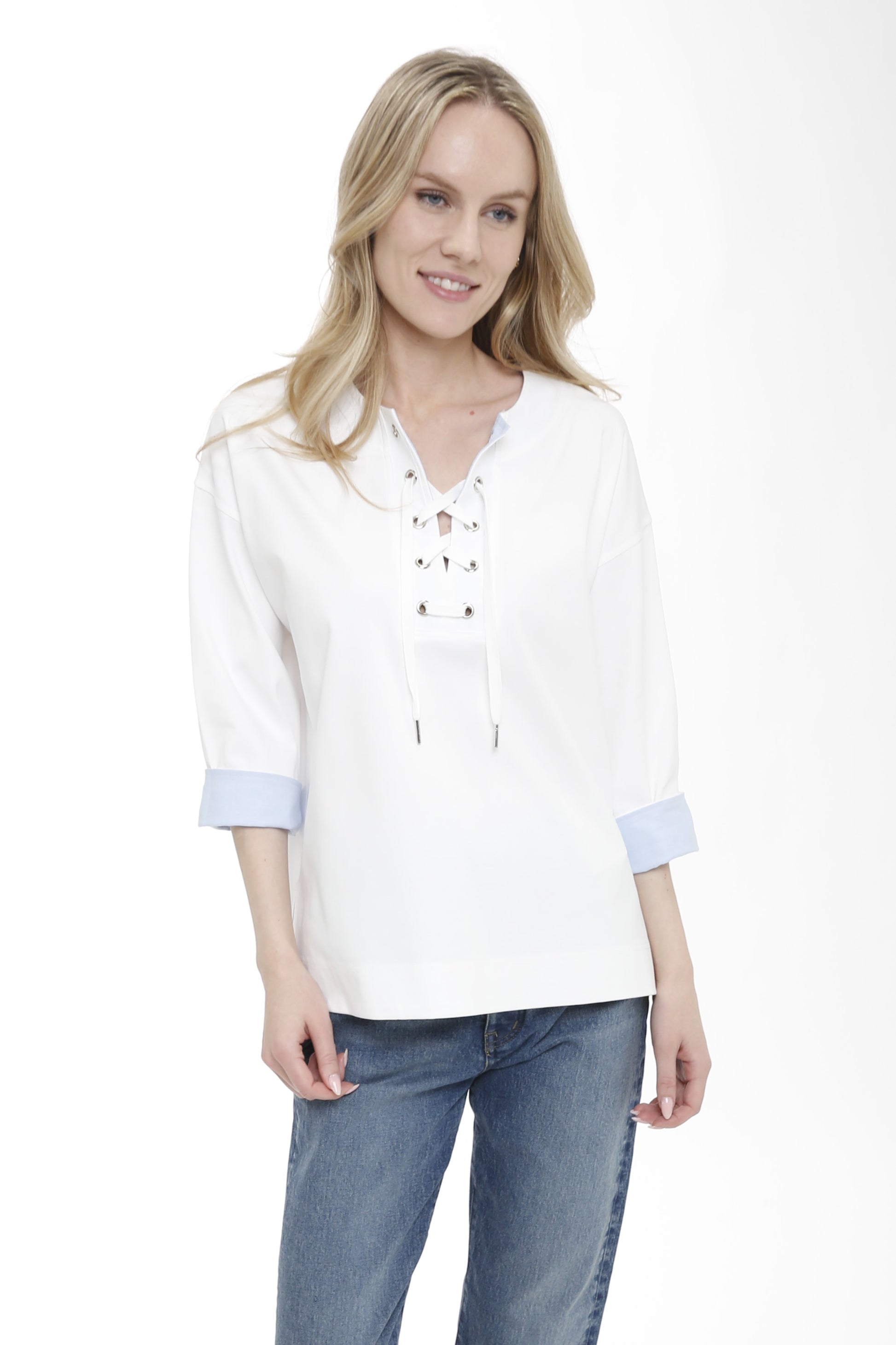 A modern classic with a playful twist. Our Cotton Interlock Lace-Up Top redefines casual dressing with woven detailing and an adjustable lace-up neckline. The soft cotton interlock fabric feels luxurious against the skin, offering the perfect mix of comfort and effortless sophistication.